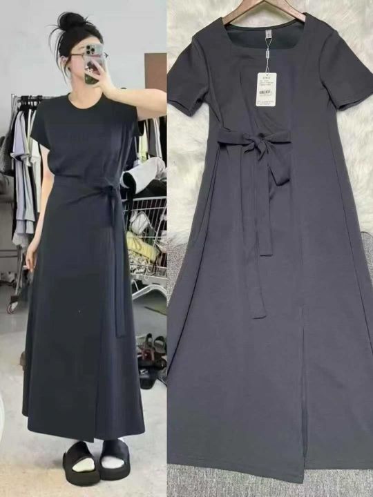 大码弹力设计感绑带T恤裙女夏季法式气质通勤显瘦小众收腰开叉连衣裙5000件,独立包装带吊牌,货品干净整洁,工厂订单货,码数齐全,图片款式,尺码M~3XL.全清福利价13.8元,分货➕1