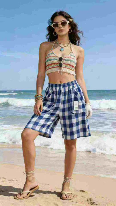 格子沙滩裤,清6.8均码,数量5070条左右,纯棉面料...