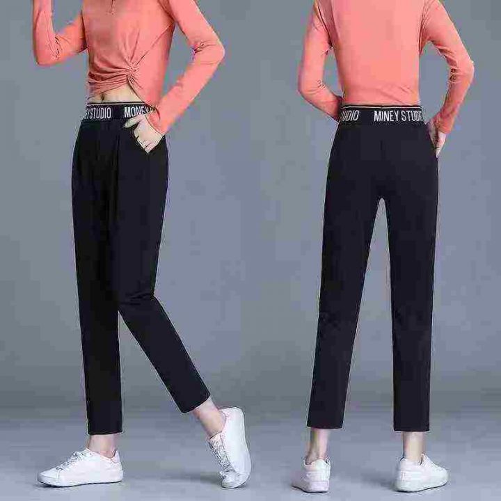 韩版松紧腰字母垂感宽松百搭哈伦裤,[爱心]1360件左右,黄字母为主,码数M-4XL,穿80-140斤,(模特图仅供参考),[666]工厂原包装瑕疵,分货结0.5