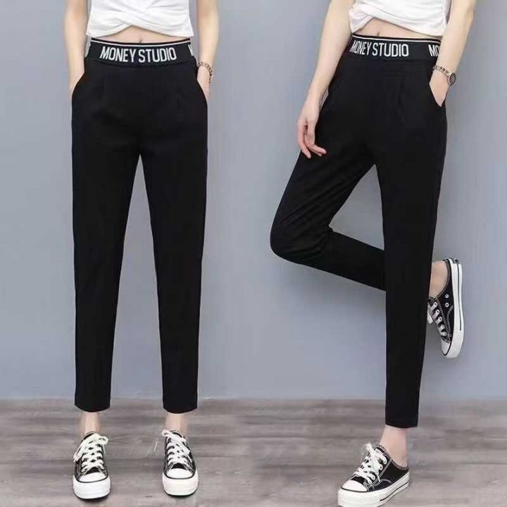 韩版松紧腰字母垂感宽松百搭哈伦裤,[爱心]1360件左右,黄字母为主,码数M-4XL,穿80-140斤,(模特图仅供参考),[666]工厂原包装瑕疵,分货结0.5
