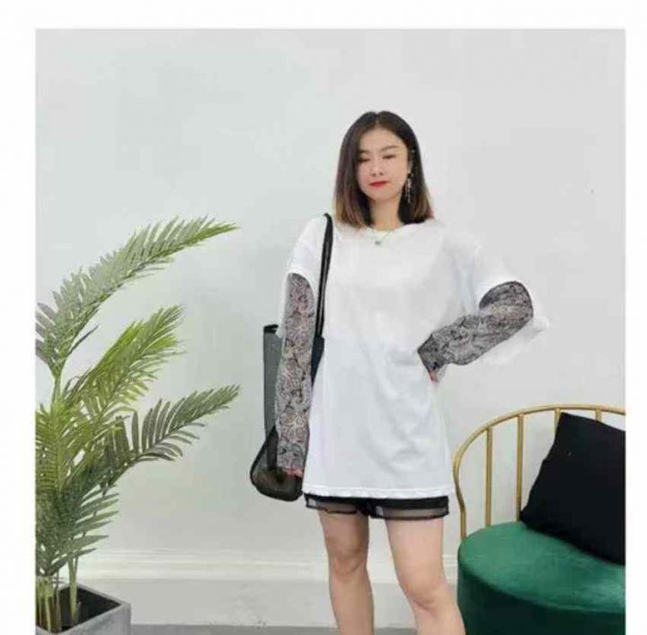 春夏季新款设计款拼接腰果花袖假两件宽松大版针织衫,独立包装,均码面料柔...