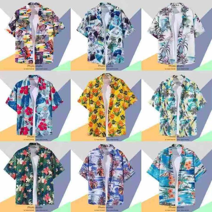 ☕️男女同款花衬衫夏季港风日系短袖衬衫韩版潮流宽松夏威夷复古海边花衬衫...