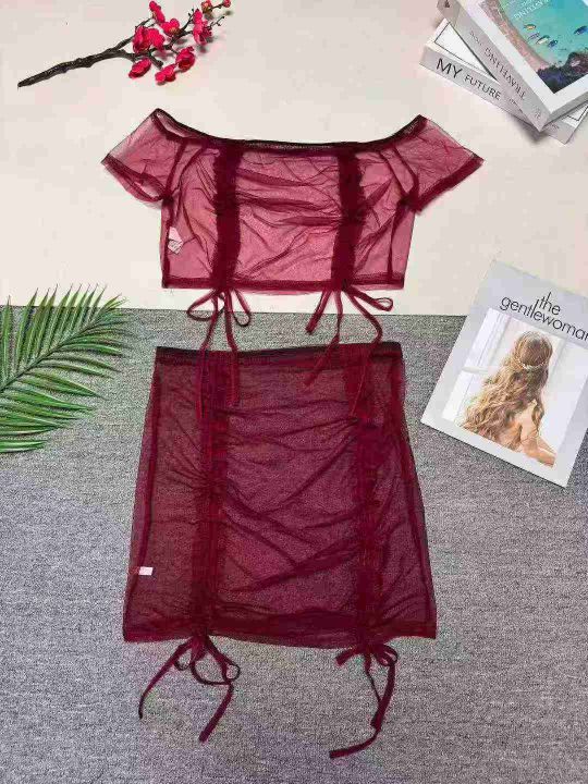 2.5清高级感薄纱半透短袖半身裙性感两件套,整款三色,数量189套,品质好,...