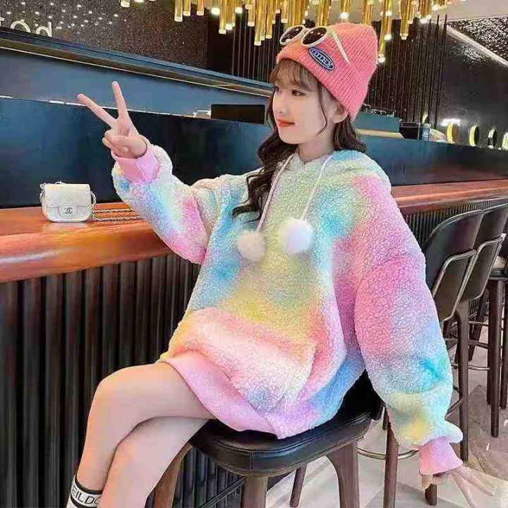 [月亮]:潮童秋冬款加厚扎染连帽卫衣