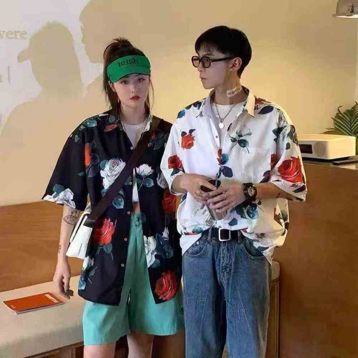 ☕️男女同款花衬衫夏季港风日系短袖衬衫韩版潮流宽松...