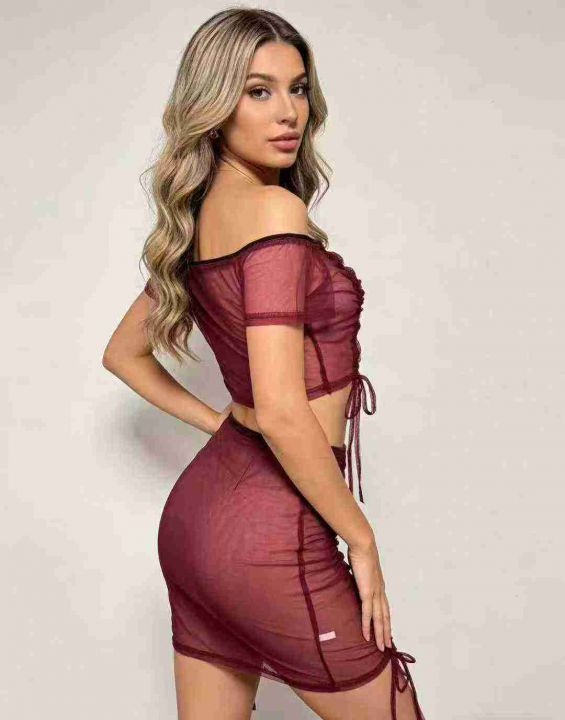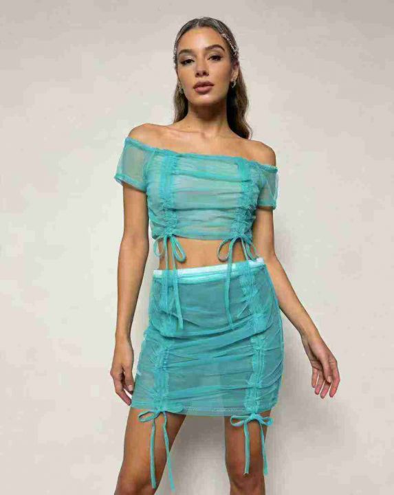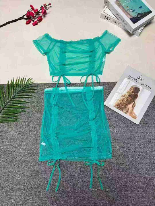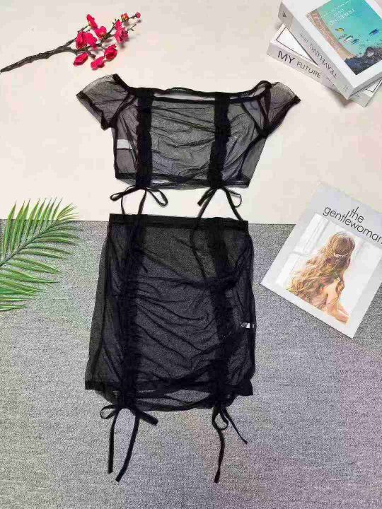 2.5清高级感薄纱半透短袖半身裙性感两件套,整款三色...