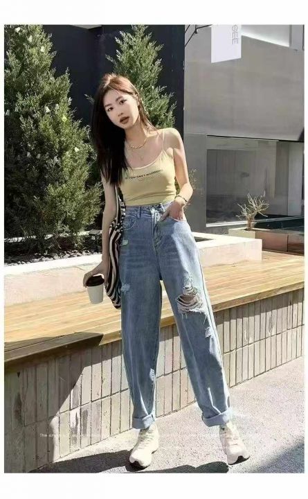 春夏季新款微胖MM破洞设计款牛仔老爹哈伦裤,独立包装带吊牌,单款2色,码...