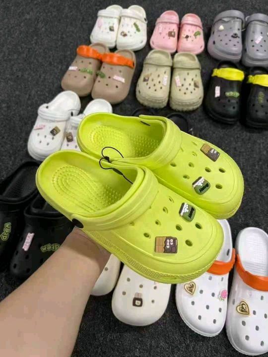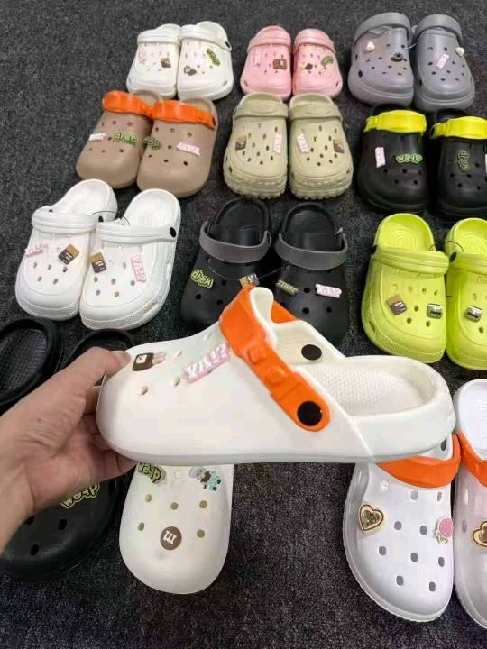 1万双 平跟洞洞鞋 扣好卡通花36-45码 随机混搭100双一...