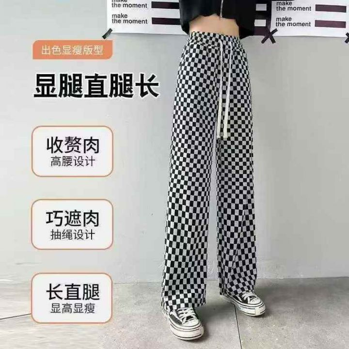 冰丝棋盘格裤子女夏季薄款高腰显瘦垂感休闲阔腿裤 有弹力 独立包装 码数1-5...