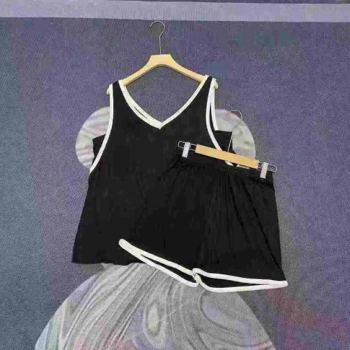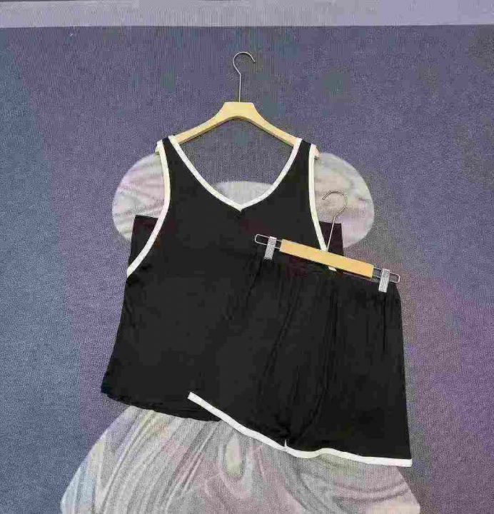 天猫在售款2000件左右高品质冰丝螺纹纯欲风女士宽松版家居服背心套装,高弹力带胸垫,单款单色,M-3XL,独立包装带吊牌