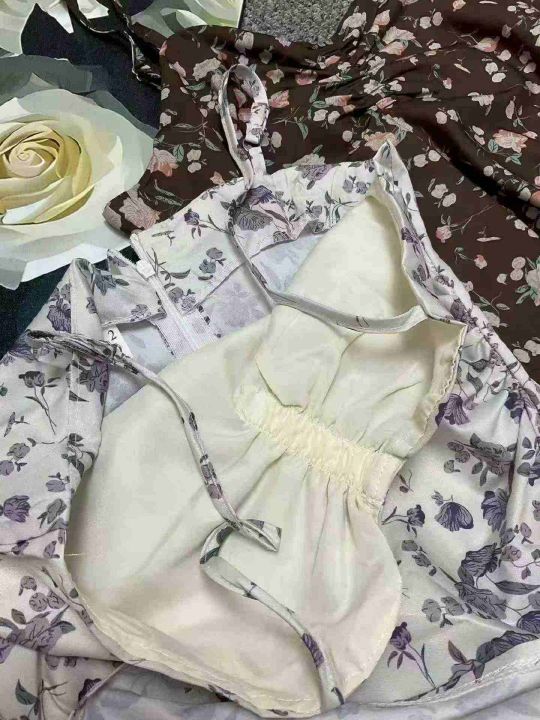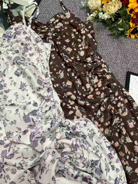 夏季新款复古网红设计款开叉法式浪漫性感吊带雪纺碎花...