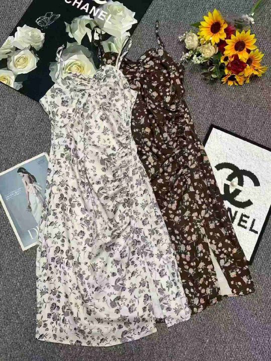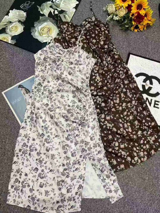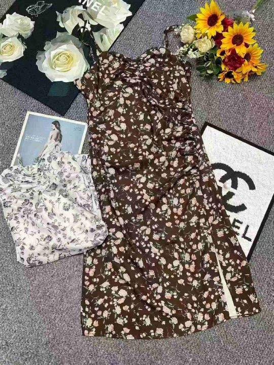 夏季新款复古网红设计款开叉法式浪漫性感吊带雪纺碎花连衣裙,独立包装,码数S--XL码,320件,全清9.9元超低价秒杀!分货加一!
