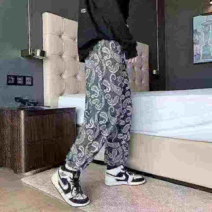 194条,腰果花印花休闲裤男秋季新款欧美ins潮牌嘻哈老爹裤宽松束脚裤子,独立包装,码数M-3XL,全清6.9元,分货➕1