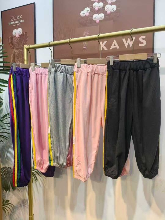 520件男女童春夏薄款休闲运动裤外穿束脚七分裤 图片款色,码数2-5(120-150)独立包装。