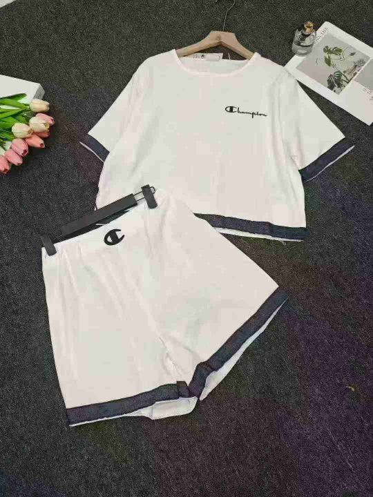 冠军休闲时尚套装女夏季2025年新款减龄小个子短裤两件...