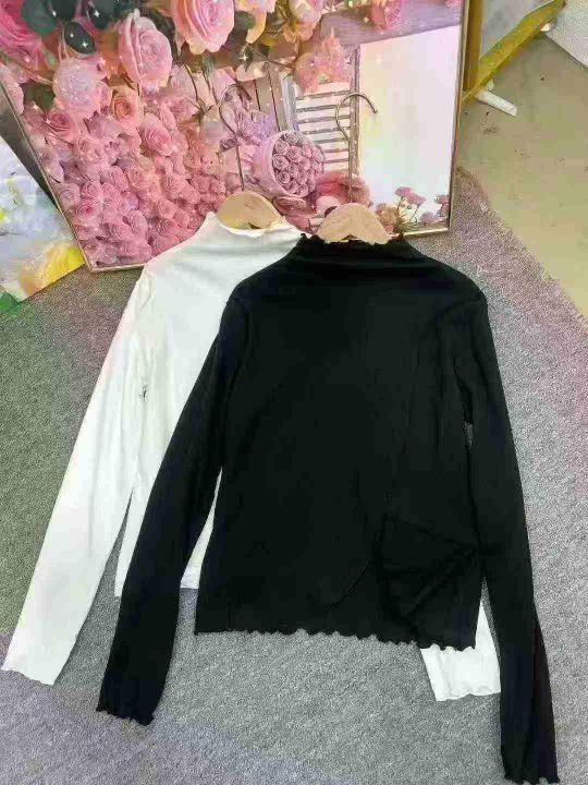 秋冬装螺纹德绒半高领T恤女设计感木耳边修身不规则百搭打底衫上衣潮,整款2色,面料软糯,弹力超大,独立包装,货品干净,1到4码,1150件左右,7.8清,分货加1