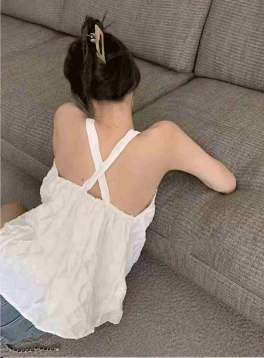 夏季新款法式性感小心机白色交叉吊带背心,独立包装,...