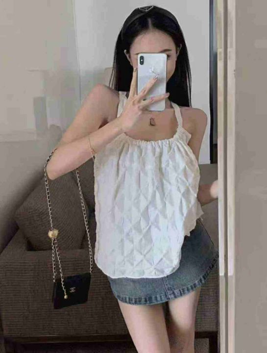 夏季新款法式性感小心机白色交叉吊带背心,独立包装,...