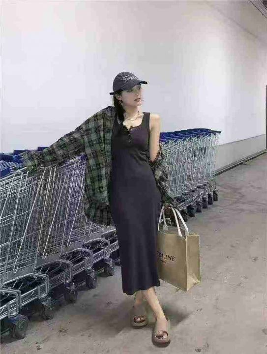 夏季新款净版简约舒适百搭气质弹力修身显瘦背心连衣裙...