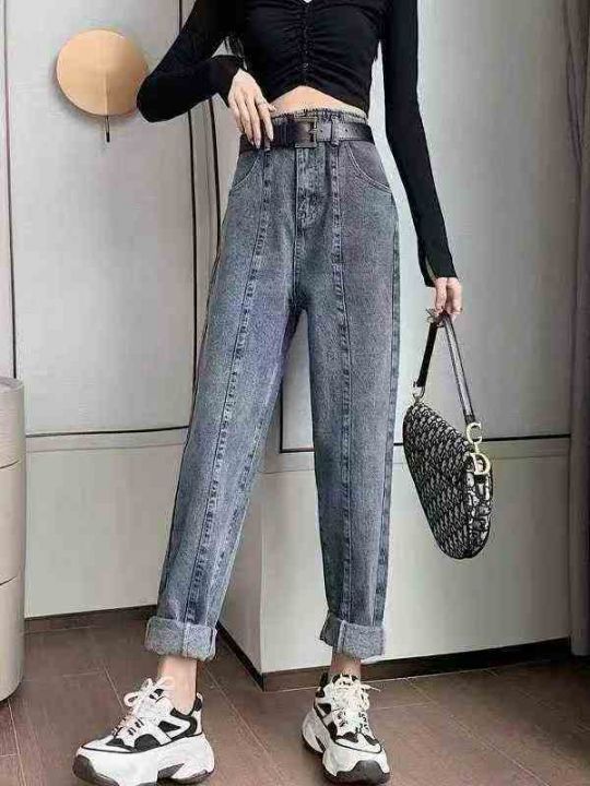 显瘦大码哈伦牛仔裤春秋装宽松新款高腰萝卜老爹女士裤120件,独立包装带吊...