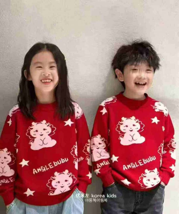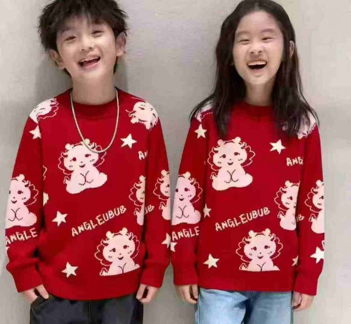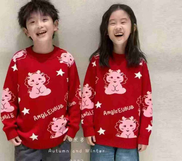 秋冬新款男女童中大童童装复古红色提花加厚包芯纱圆领套头毛衣,独立包装带吊牌,码数100-150码,800件左右,全清6.9元超低价秒杀!分货加一!