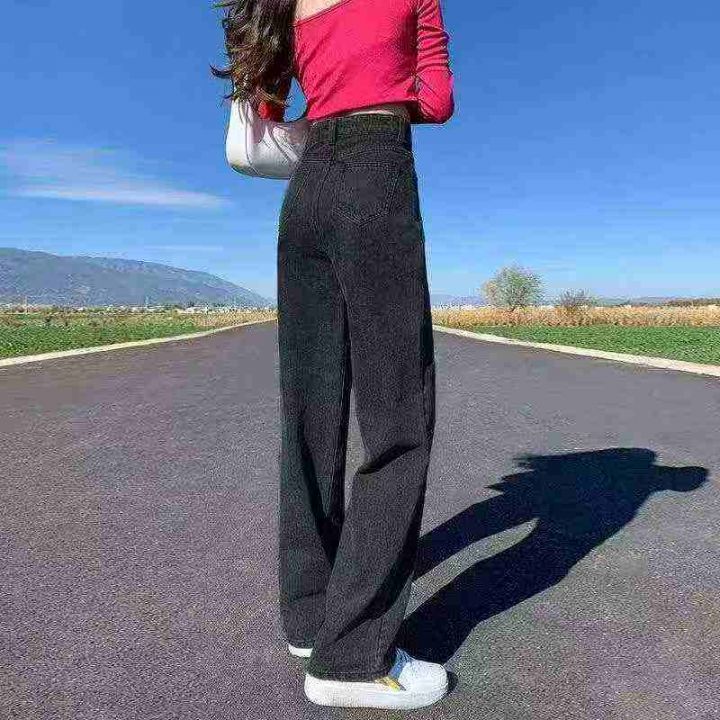 春秋新款复古高腰宽松直筒阔腿牛仔裤,独立包装,码数...