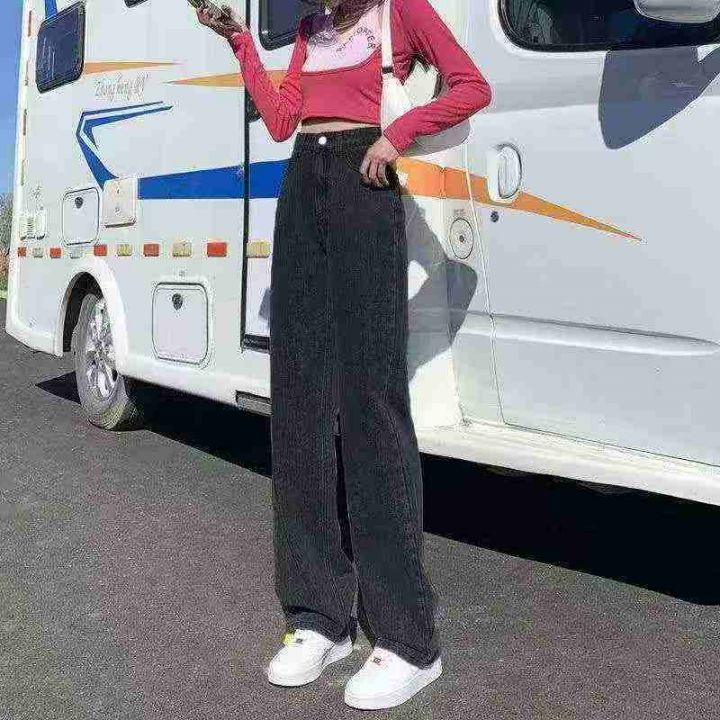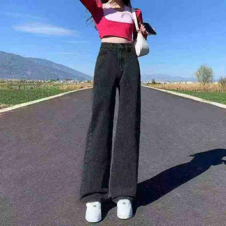 春秋新款复古高腰宽松直筒阔腿牛仔裤,独立包装,码数...