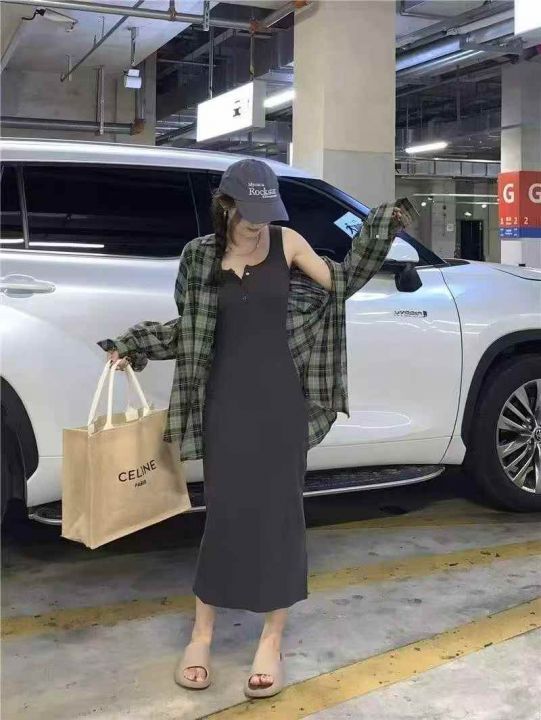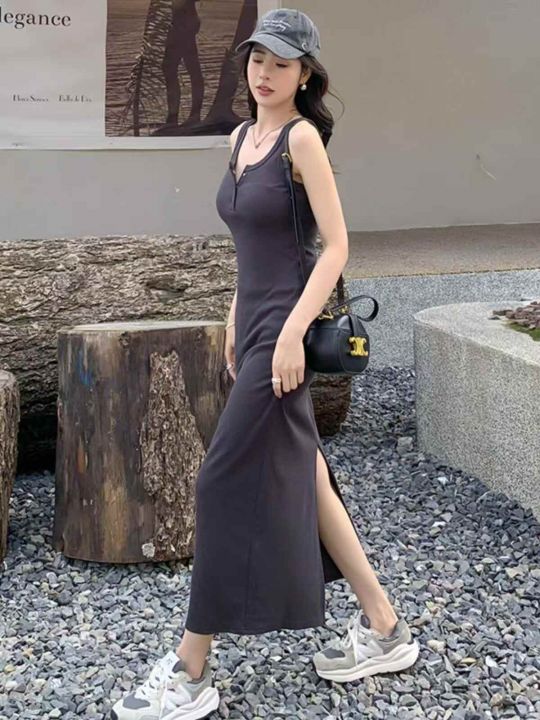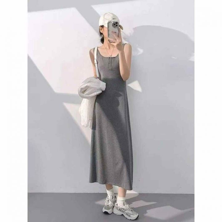 夏季新款净版简约舒适百搭气质弹力修身显瘦背心连衣裙...