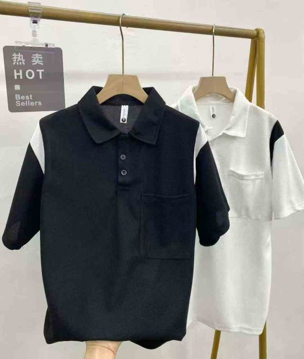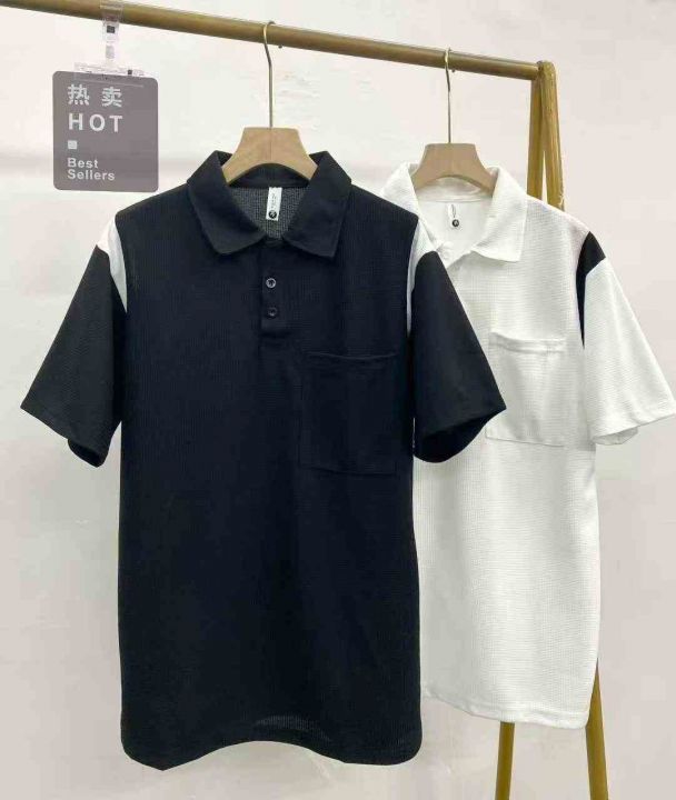 华夫格短袖Polo衫230件8.9,撞色拼接,有口袋,后领包...