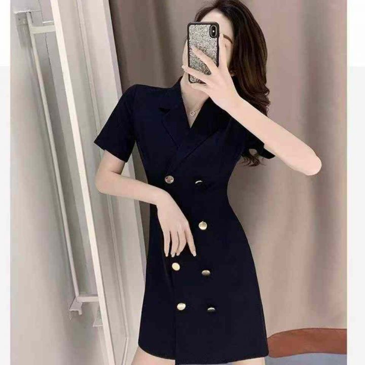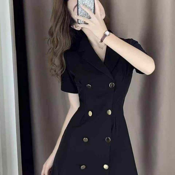 夏季新款赫本风收腰显瘦气质轻熟风西装连衣裙,独立包...