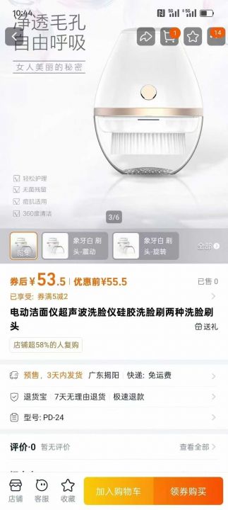 电动洁面仪超声波洗脸仪硅胶洗脸刷两种洗脸刷头,数量...