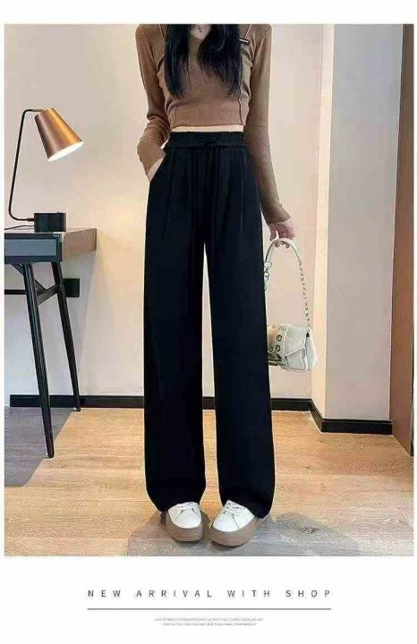 春秋新款网红小众设计感高腰垂感窄版直筒阔腿休闲裤,...