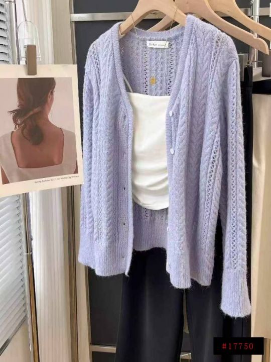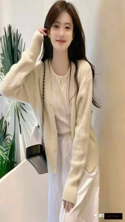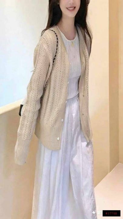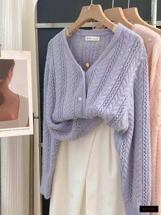 春秋新款设计感镂空钩花短款宽松针织毛衣开衫,独立包...