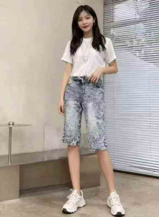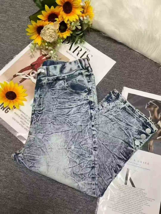 男女同款复古蓝高弹力洗水棉松紧腰牛仔中裤,独立包装,码数M--2XL码,400件左右,全清5.8元超低价秒杀!分货加一!