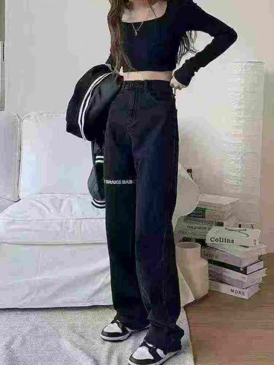 3️⃣天猫下架女士美式显瘦高腰宽松直筒阔腿牛仔裤80...