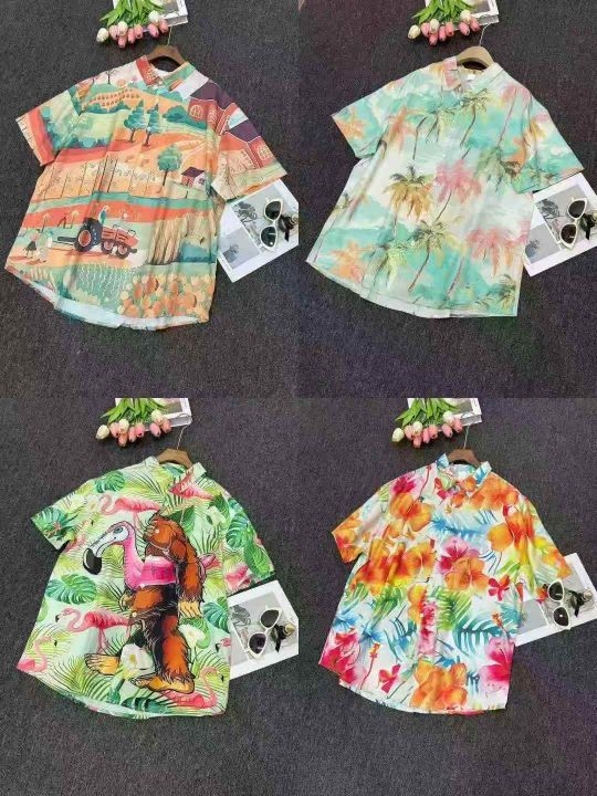 欧洲站夏季新款男士衬衫夏日风情时尚短袖免熨烫翻领衬...