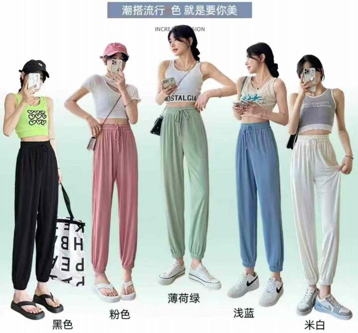 春夏季新款网红爆款净版简约宽松百搭冰丝休闲裤,2款多色,码数S-XL码,1266件,全清5.9元超低价秒杀!分货加一!