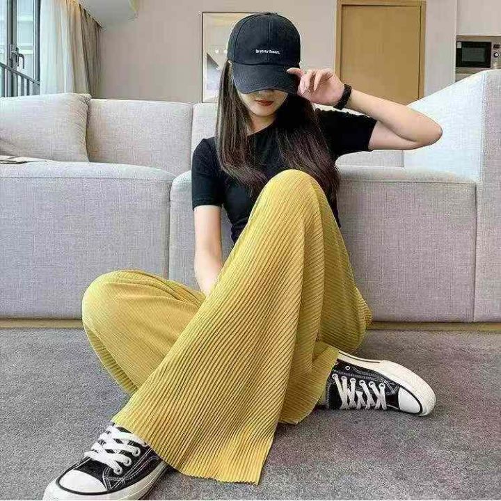 春夏季新款网红冰丝宽松百搭褶皱阔腿休闲直筒裤,独立...