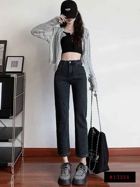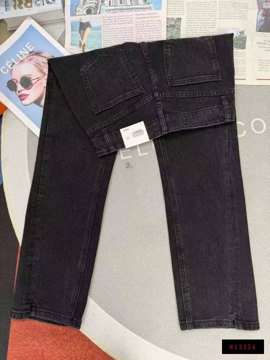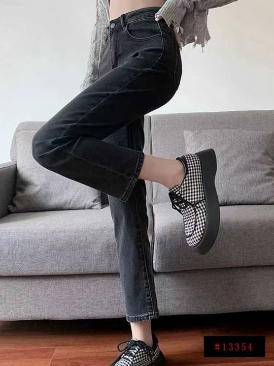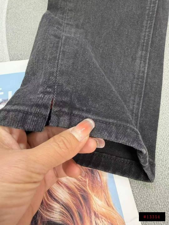 黑灰高腰微弹显瘦窄版直筒百搭牛仔裤,单款单色,独立...