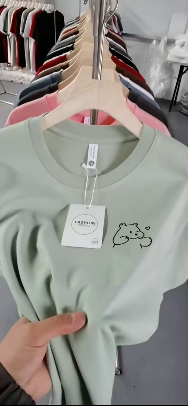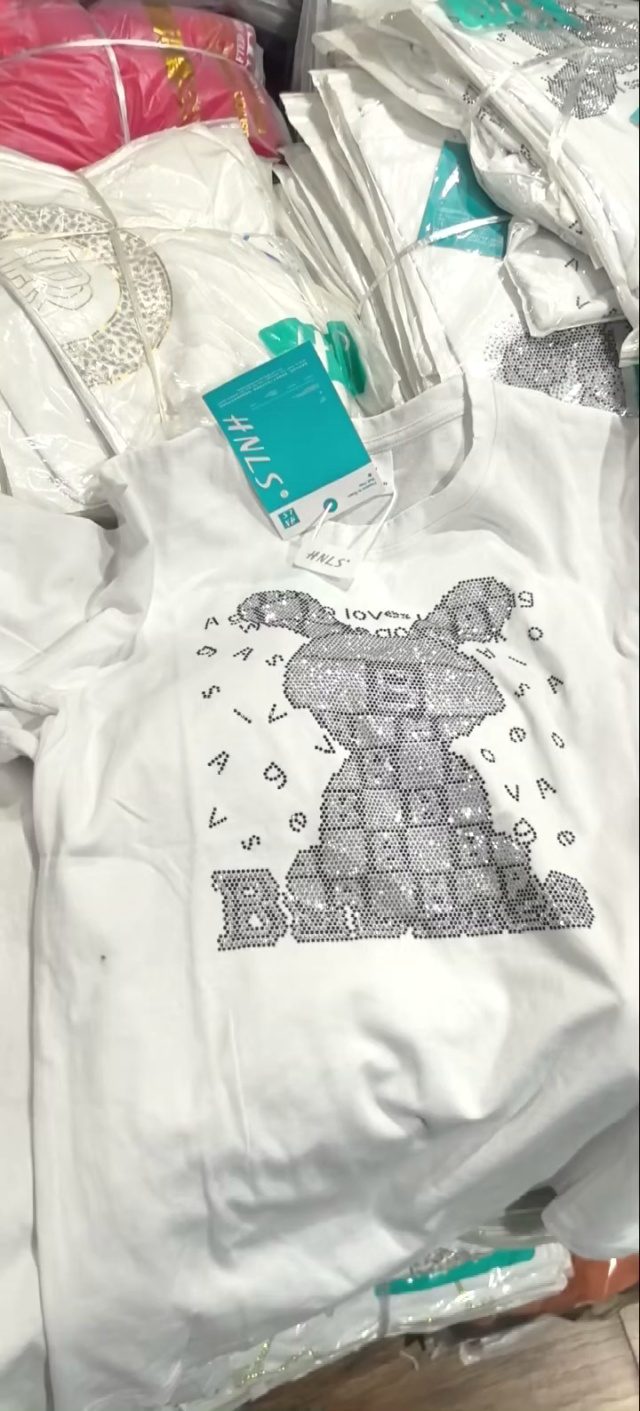220克重工烫钻双纱女士大版体恤100件起批14元