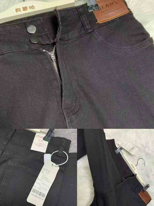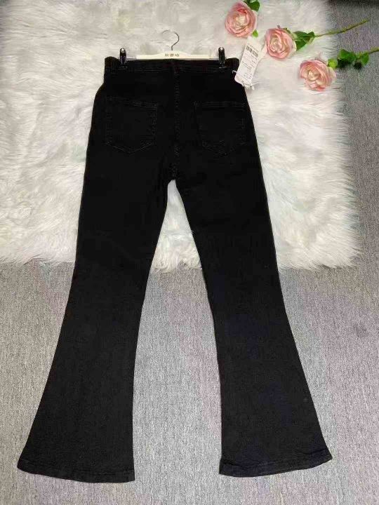#Lady jeans wholesale外单高腰女士小整杂款微嗽叭牛仔裤,四面高弹修身显...