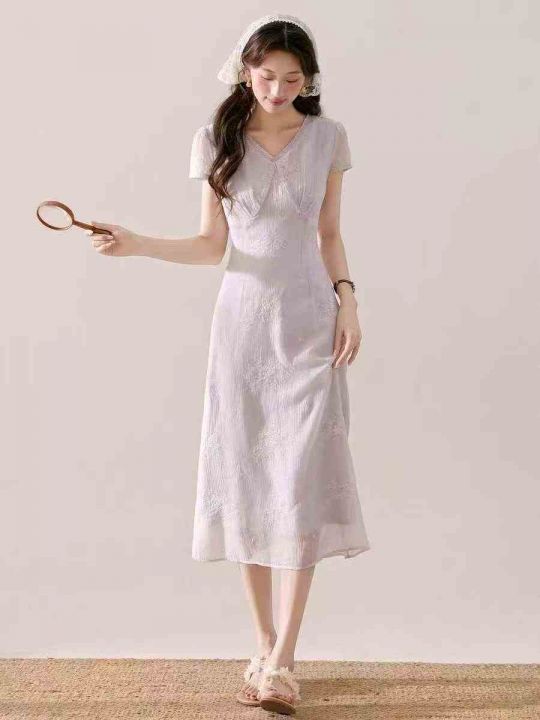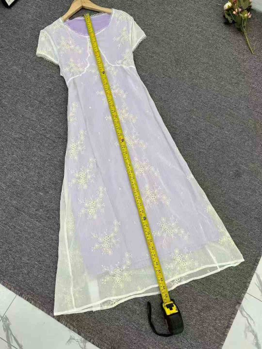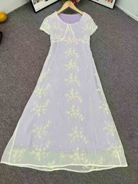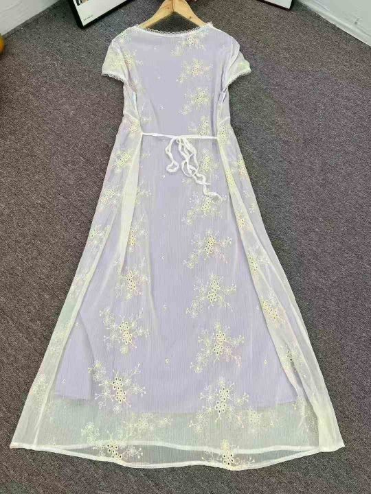 4500件高品质夏季爆款收腰显瘦修身长款连衣裙,工艺绣花,单款单色,独立包装,码数M-L。