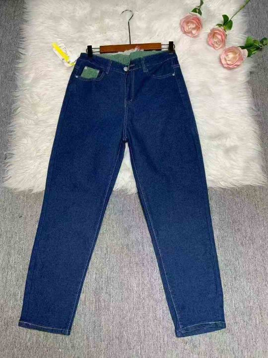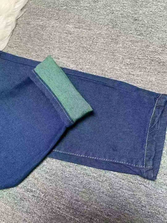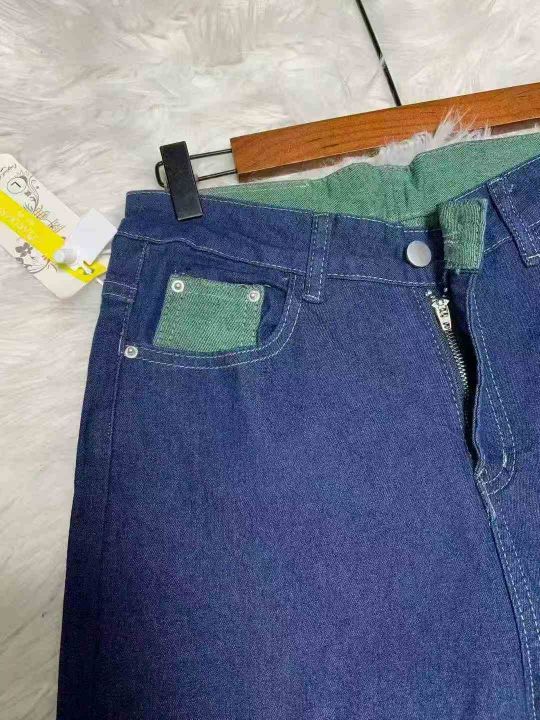 韩国代购女装 弹力牛仔蓝绿色翻边裤脚老爹牛仔裤228件,独立包装带吊牌,尺码L~4XL,全清福利价9.9元分货➕1