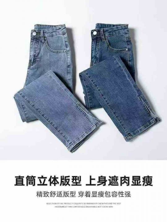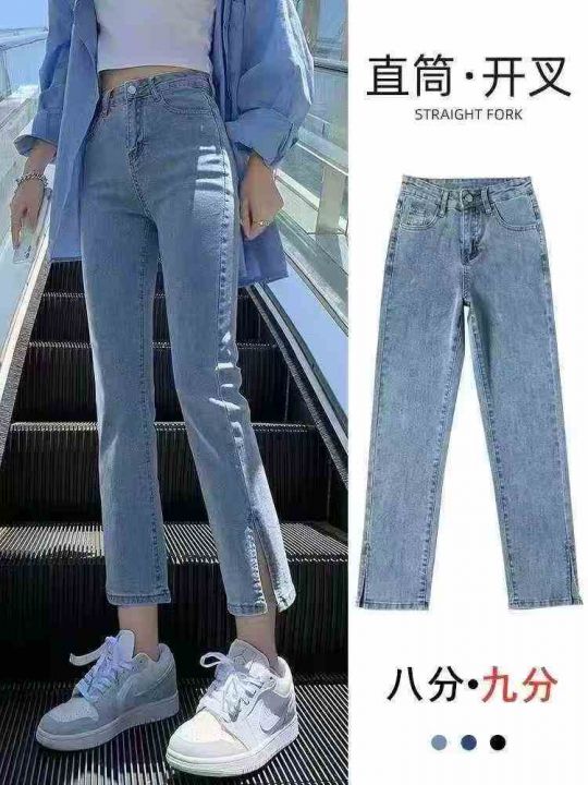 高腰小个子薄款弹力开叉直筒牛仔裤女设计感烟管裤560件,独立包装带吊牌,尺码S~5XL货品干净整洁,全清福利价9.9元