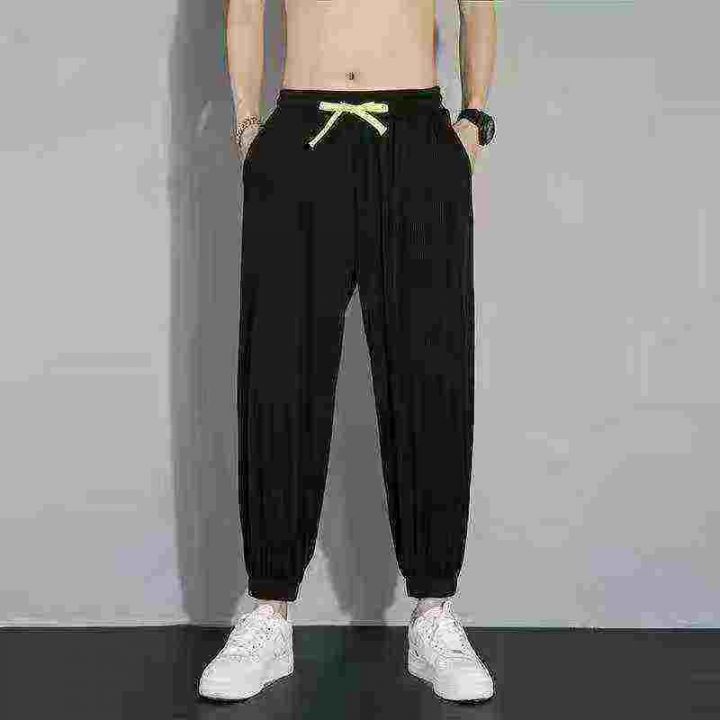 全清6.5元,6538条\'裤子夏季男休闲薄款韩版ins潮牌冰丝条纹运动大码弹力宽松哈伦裤\'分货➕0.5
