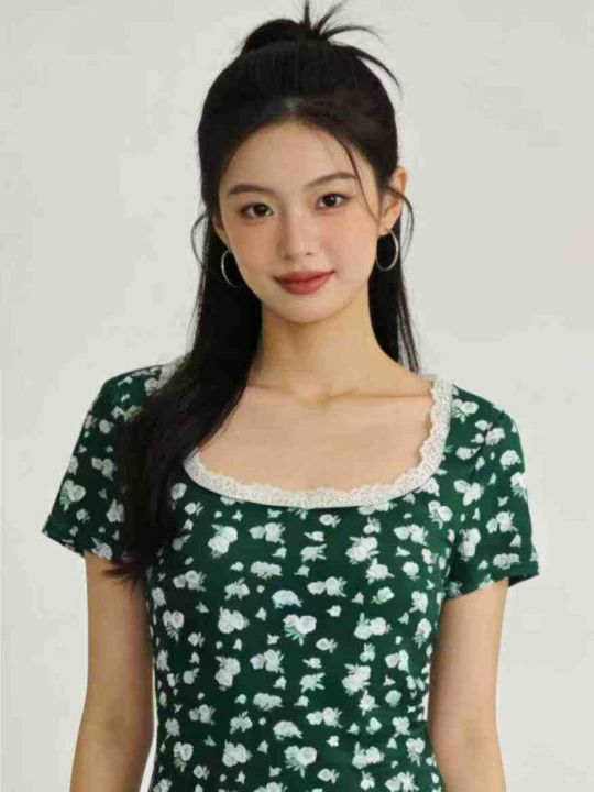 3.5清电商仓回收700件辣妹复古碎花蕾丝纯欲短袖T恤,...