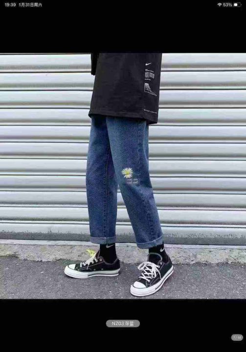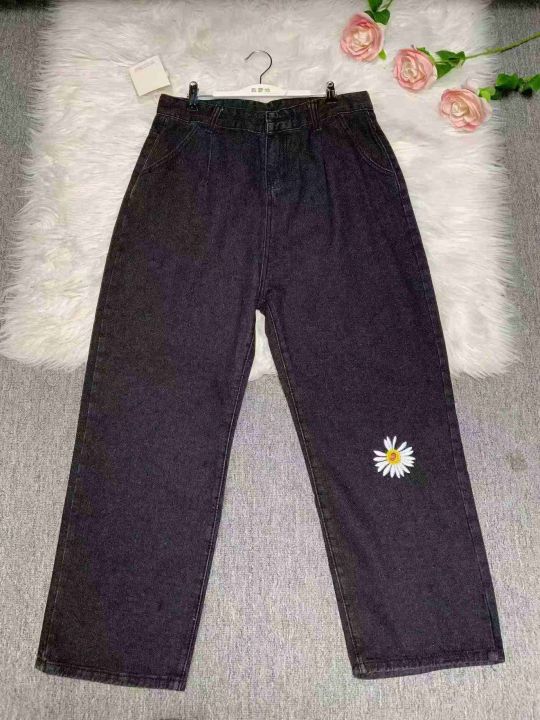 男女同款小雏菊刺绣牛仔裤子直筒阔腿萝卜宽松休闲高腰显瘦百搭牛仔裤1400件,图片系列款,独立包装带吊牌,尺码S~5XL,全清福利价9.8元,分货➕