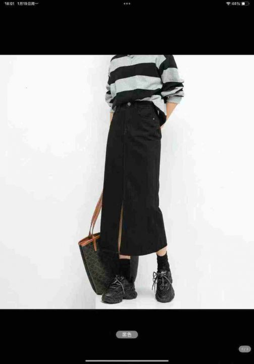 靓妹黑色牛仔半身裙女新款直筒开叉长裙子145件,独立...