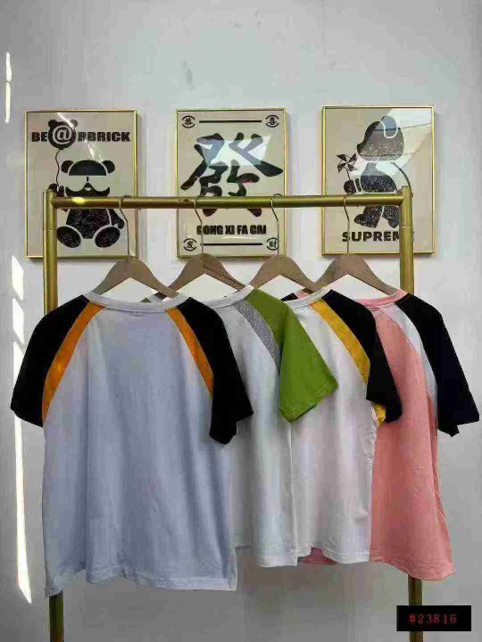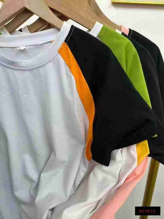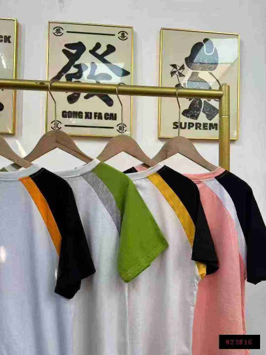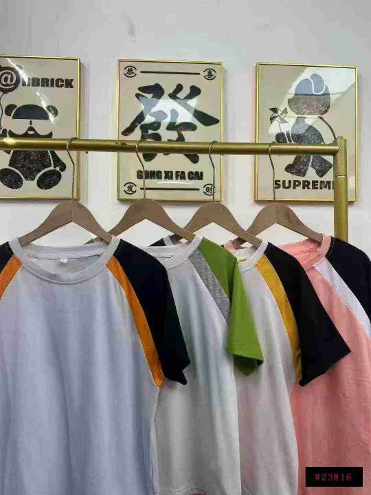 天猫在售款880件左右高品质夏季常规版纯棉插肩拼色休闲百搭短袖,码数S-2XL,单款四色,十件一包装@_@