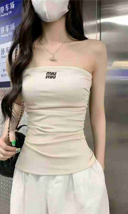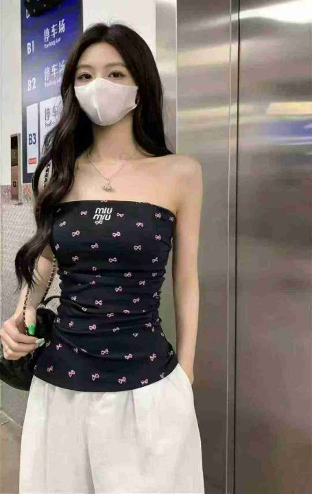夏季新款性感辣妹纯欲风刺绣小标弹力修身显瘦针织抹胸...